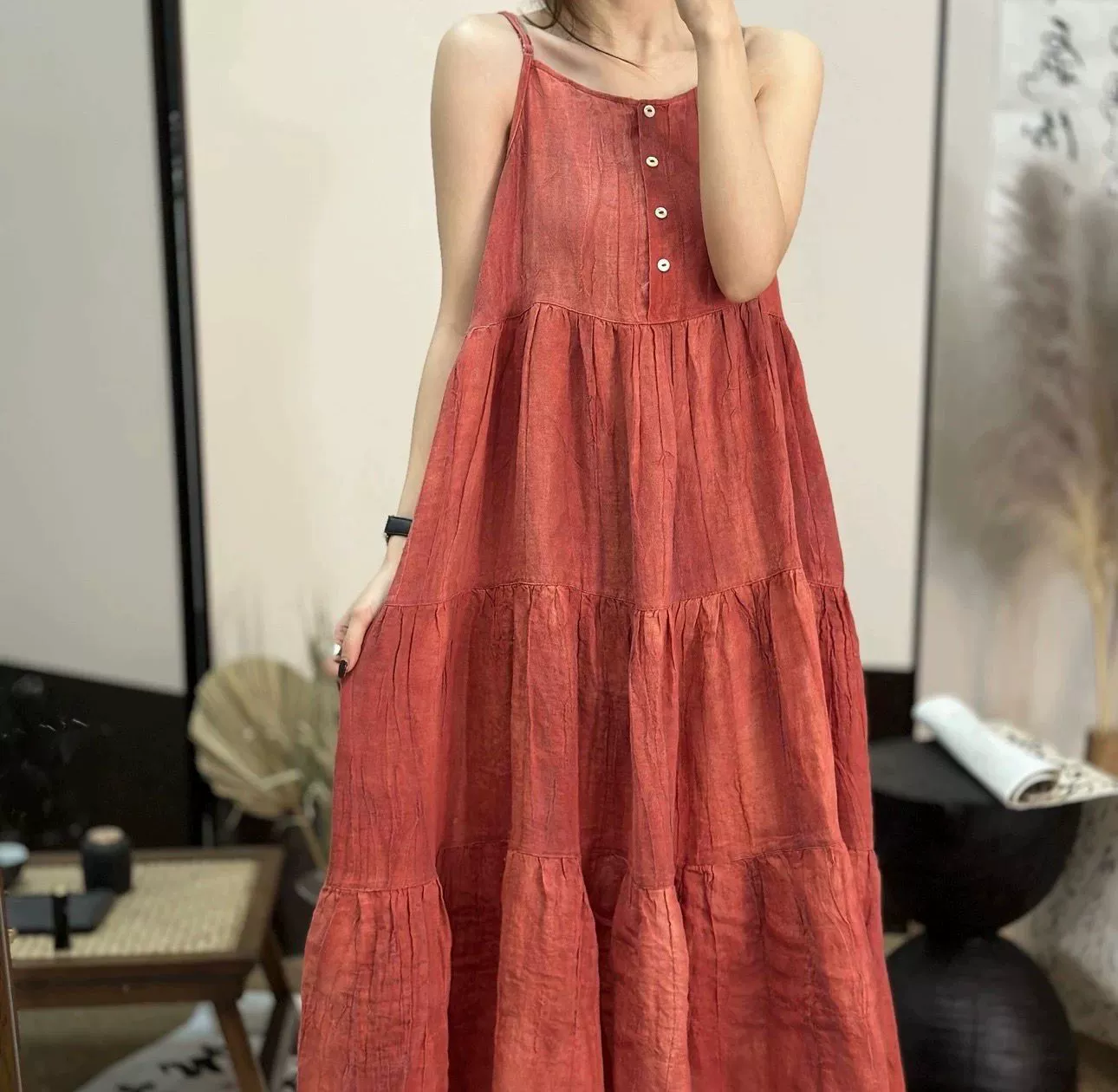 Retro suspender dress travel, leisure linen literature and art