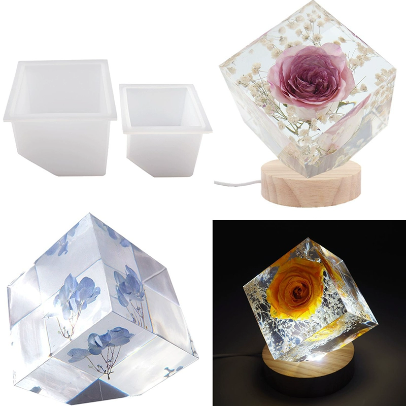Crystal Epoxy DIY Creative Handmade Beveled Large Cube Beveled Specimen Dried Flower Table Lamp Ornament Mold