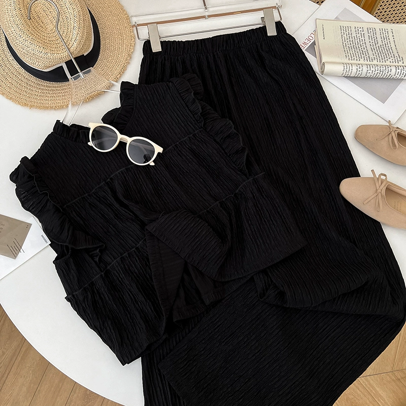 Miyake Pleated Fashion plus size Cross-border Casual Printed Two-piece Elegant High-end Slimming Commuter Pants suit