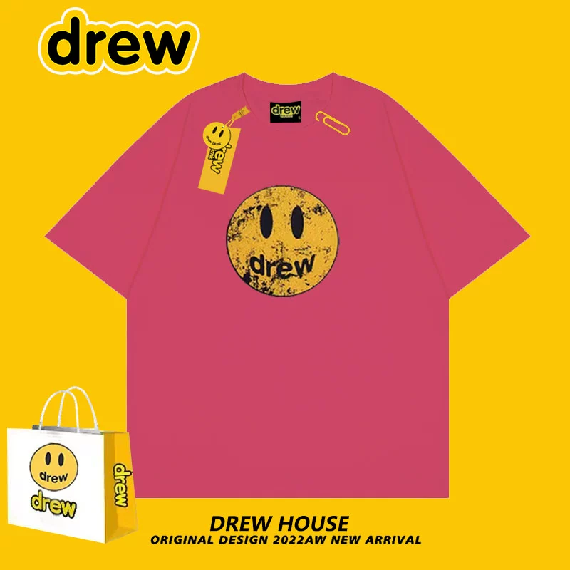 Drew Smile Face Destroy Destroy Mid -sleeved Couple T -shirt