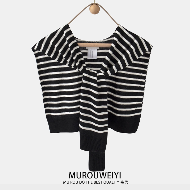 Net Red Girl Spring Summer Wool striped shirt knitted shawl