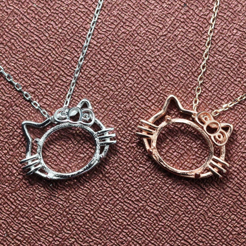 Oval egg-shaped flat bottom plain pendant holder hellokitty cat pendant empty holder 925 sterling silver plated 18K gold for girls