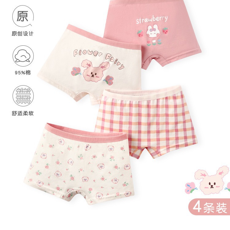 N146 girls’ underwear spring and summer wholesale cute little rabbit baby boxer underwear pure cotton plaid children’s underwear batch