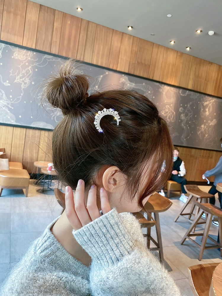 Super Flashing Pearl Diamond Crescent Crescent Fucking Bangs and Bangs Fuck Korean Niche Significant Design Senior Temperature Hair Towing Women