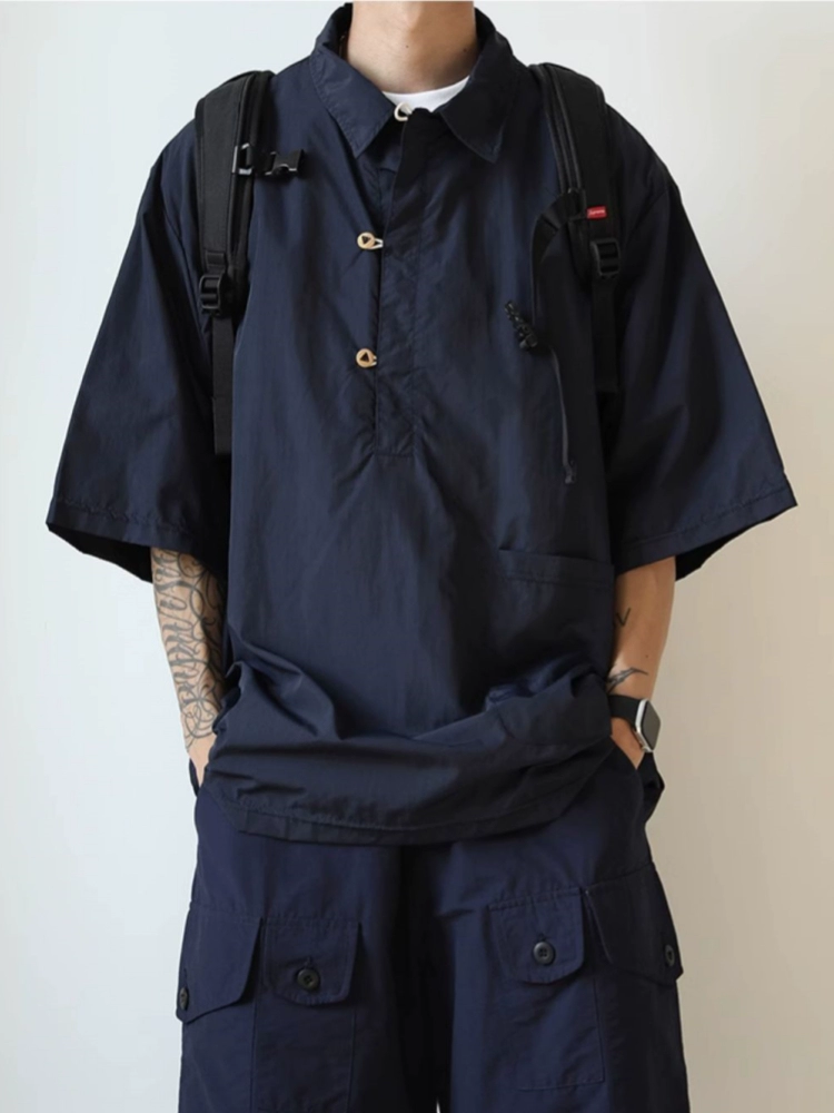 boy Japanese retro couple casual half-sleeved work clothes