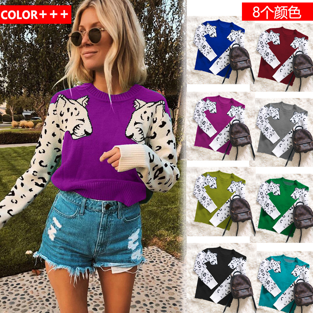 Eight-color four-size spot autumn and winter women’s Amazon explosions leopard chest leopard pattern knitted long sleeve European and American sweater