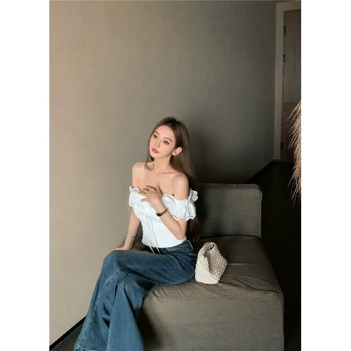 Girls’ Shirt Spring Women’s Sweet Lady Double Layers Large Lars Ruffled Collar Puff Sleeve Long Sleeve Top