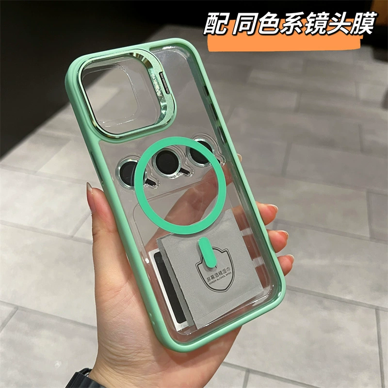 Apple iPhone 15 mobile phone case creative invisible metal bracket suitable for magsafe magnetic lens full-inclusive 14Promax with lens film transparent protective cover 13/12/11 mobile phone case trend