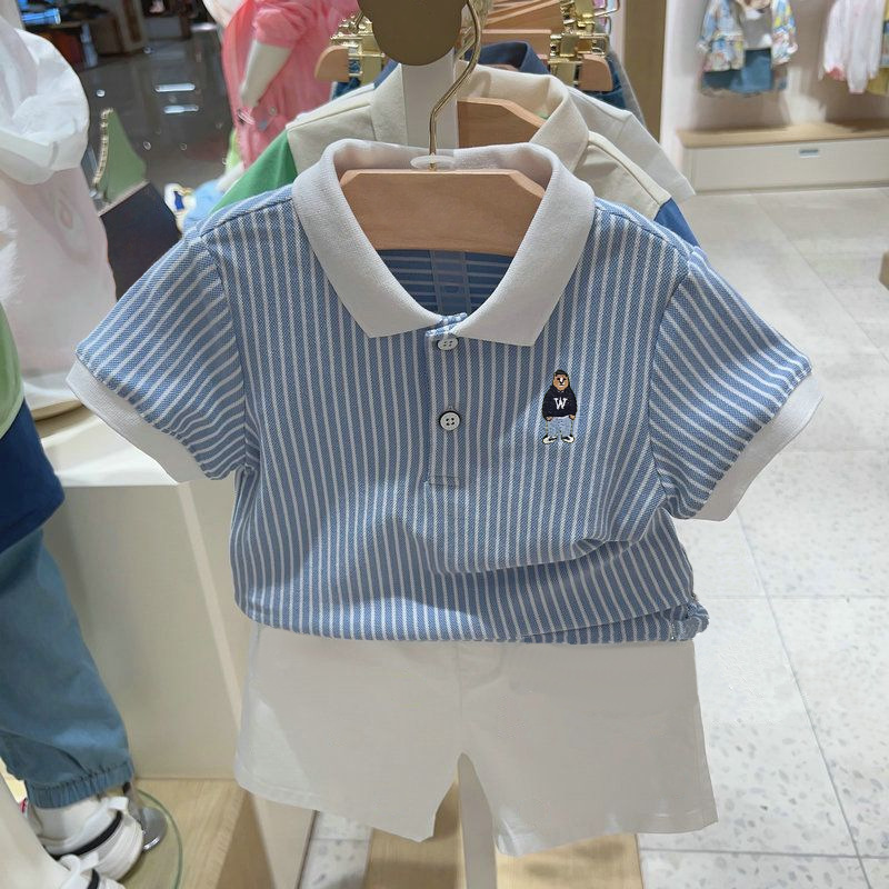 2021 Summer Handsome Boy Children Cyber Celebrant Striped Vest Set Children Children Baby Western-style Clothes Summer Fashion 0051