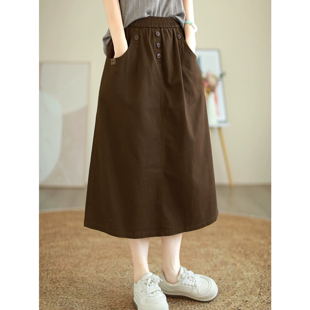 Aging Spring Spring Retro Pure Color Total Loose Skirt