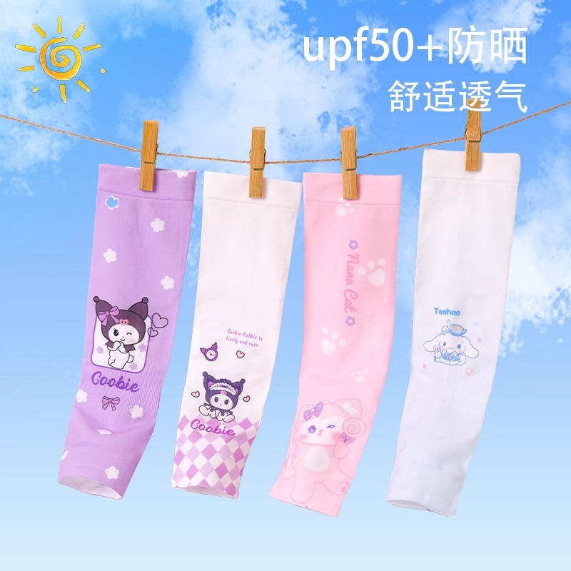 Children’s Ice Sleeves Girls’ Outdoor Sunscreen Sleeves Strawberry Bear Kulomi Cartoon Sunshade Breathable Girls’ Ice Silk Sleeves