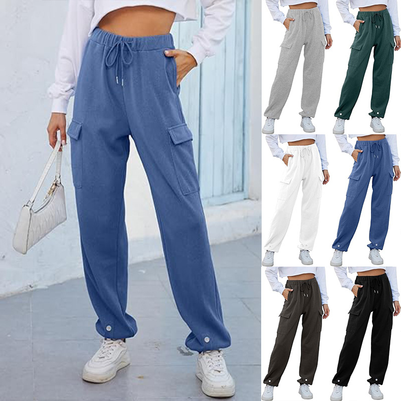 Cross-border Europe and America Amazon Autumn New Women’s Casual Home Comfortable Loose Jogging Button Pocket Sports Pants