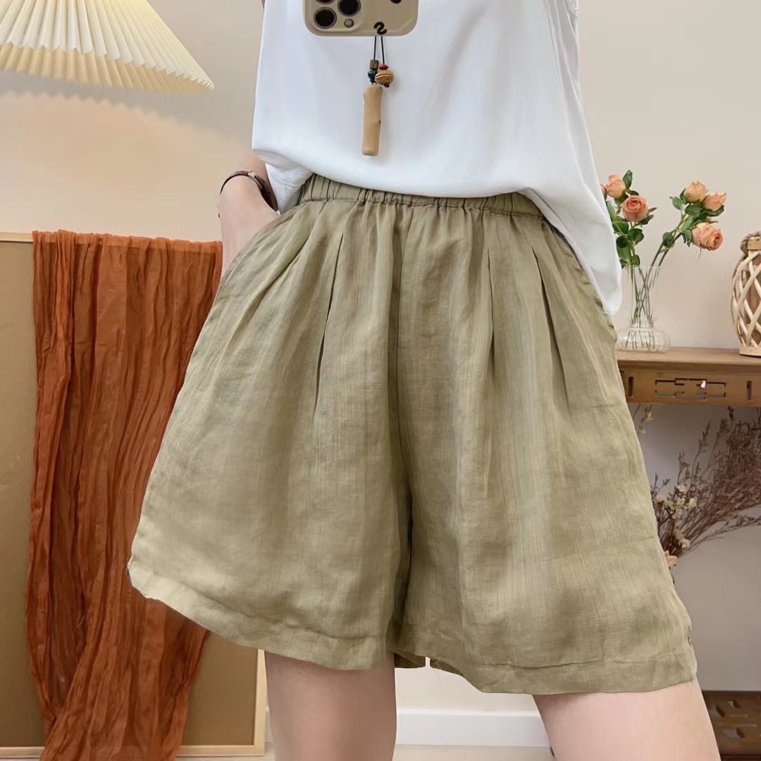 Pure Ramie Japanese Single Stretch Waist Culottes Casual Wide-leg Shorts Women’s 2023 Xia Xin 9 Color