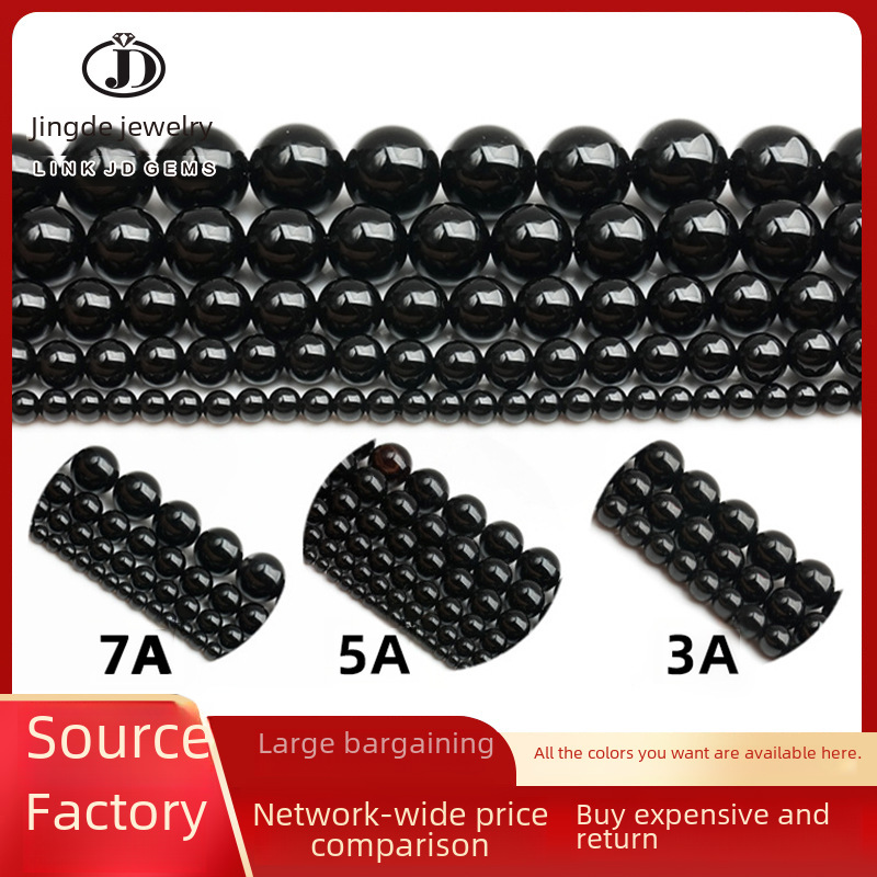 Factory direct supply black agate loose beads diy jewelry accessories black agate round beads semi-finished bracelet beads wholesale