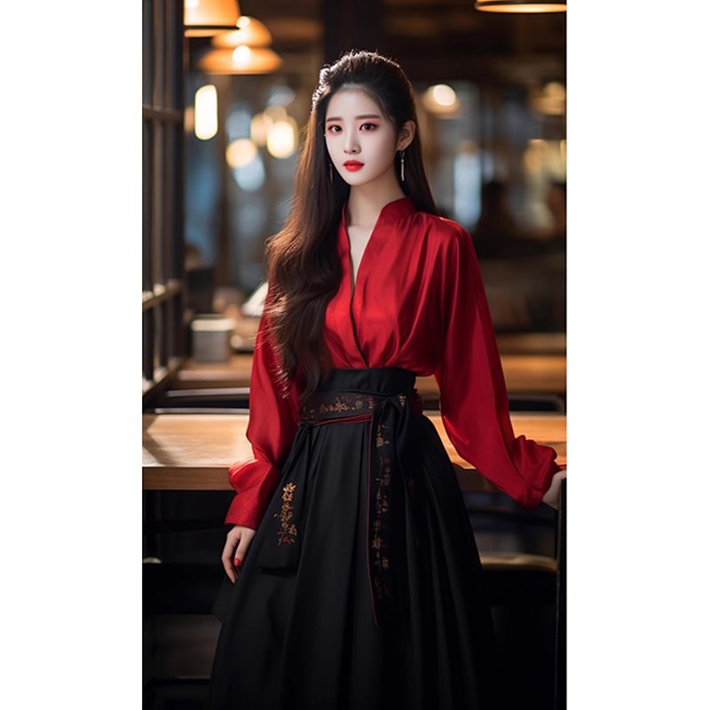 2024 New Spring New Chinese Style National Style Powerful Black Adult Horse-faced Skirt Two-piece Suit Women’s Clothing