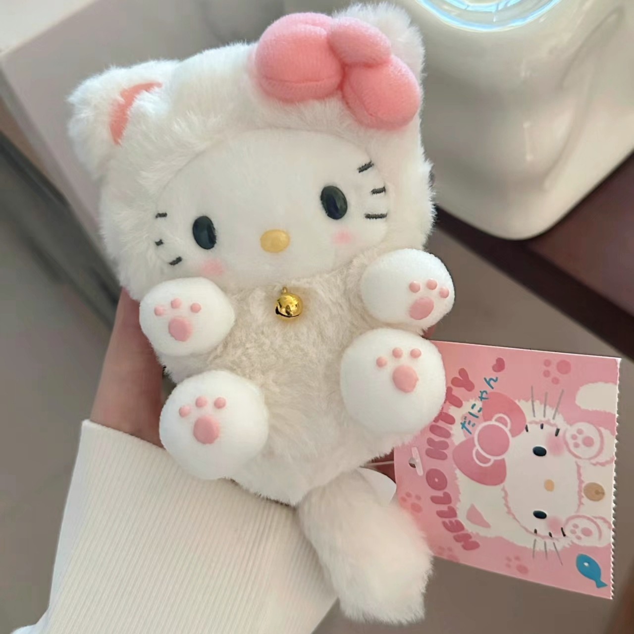 Long tail hellokitty Hello Kitty bag doll black leather pendant Hello KT Cat plush ornaments hallo