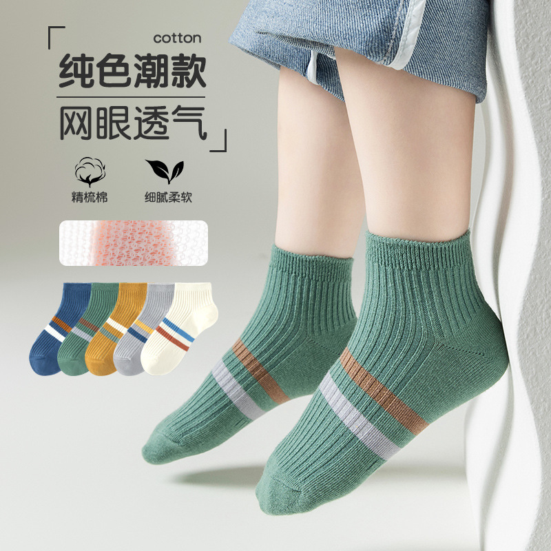 24 Spring and Summer New YouKexiu Class A Cotton Thin Mesh Breathable Socks for Boys and Girls Children Socks Short Socks
