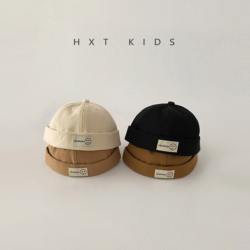 Children’s landlord hat spring and autumn smiley face logo Korean baby fashion simple wear melon skin hat spring travel hat tide