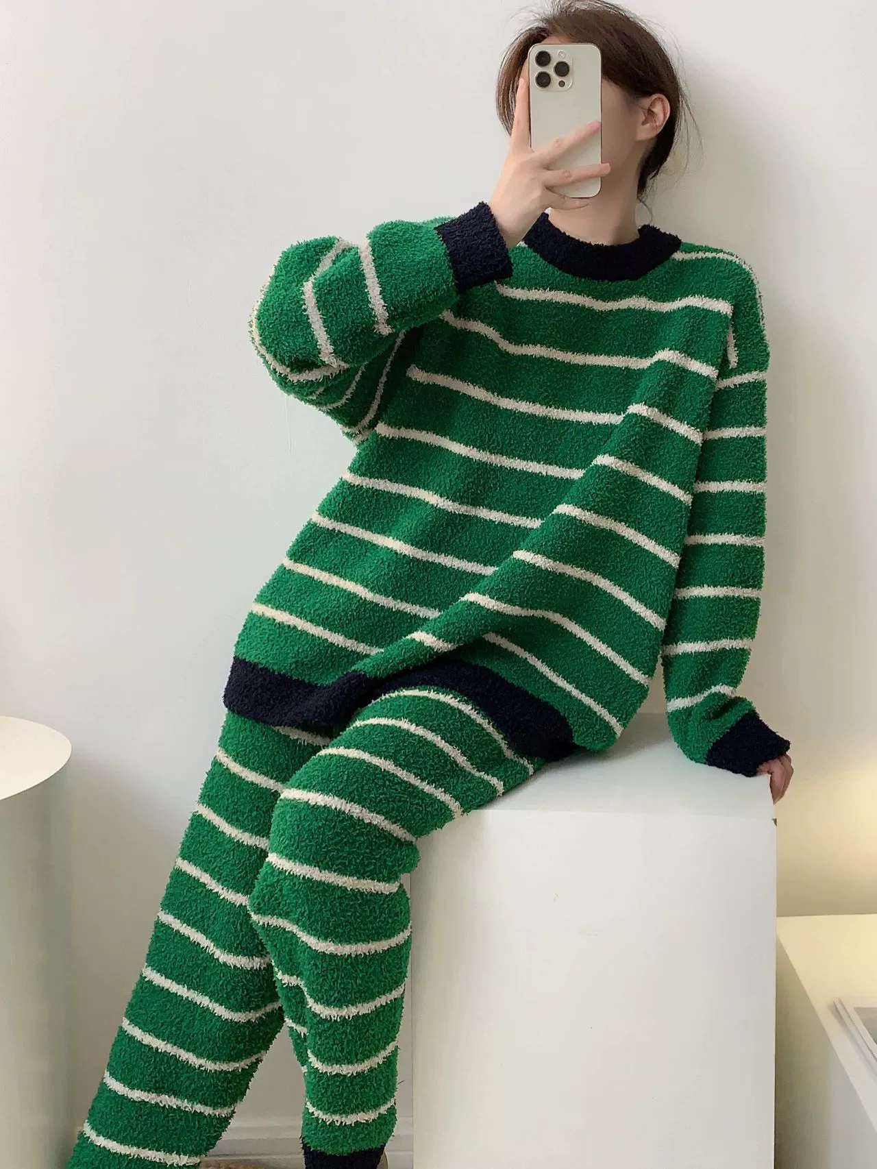 New product promotion fashion color jacquard suit pajamas winter thickened fleece-lined Internet celebrity girl couple casual suit men