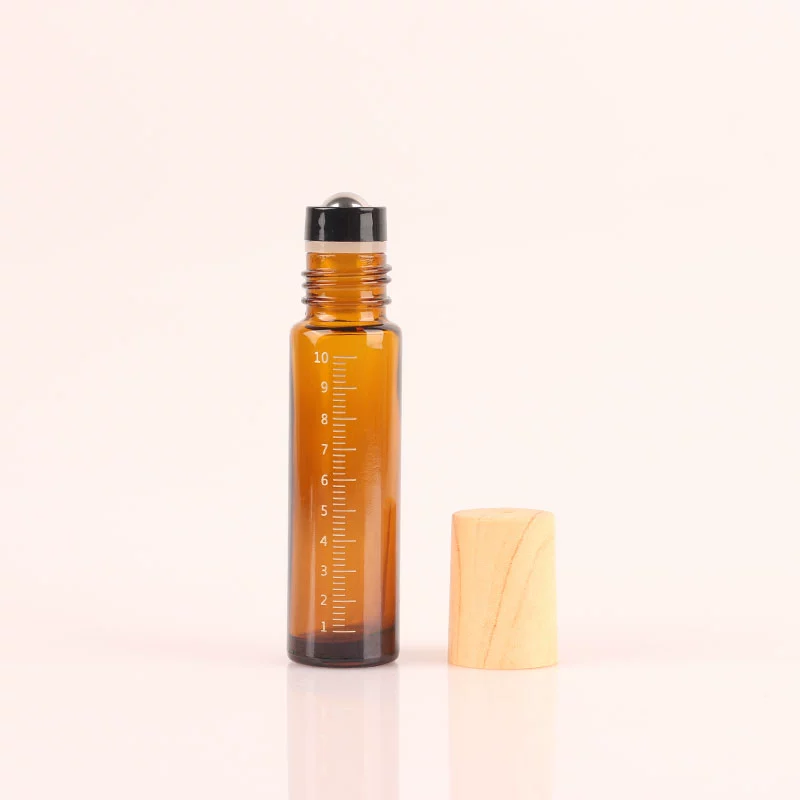5ml10ml wood grain lid tea color strip scale essential oil bottle thickened glass roller bottle empty bottle essential oil stainless steel ball