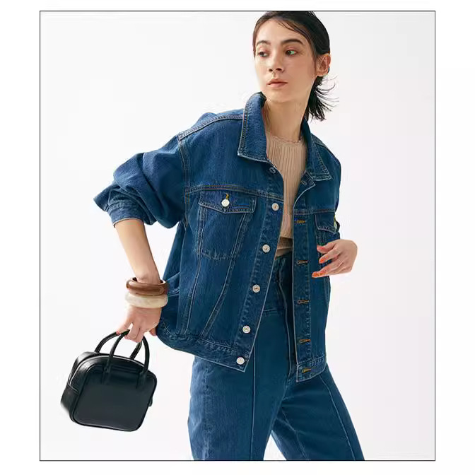 Spot WZFS2016 spring and summer Japanese New loose shoulder back button lapel denim jacket