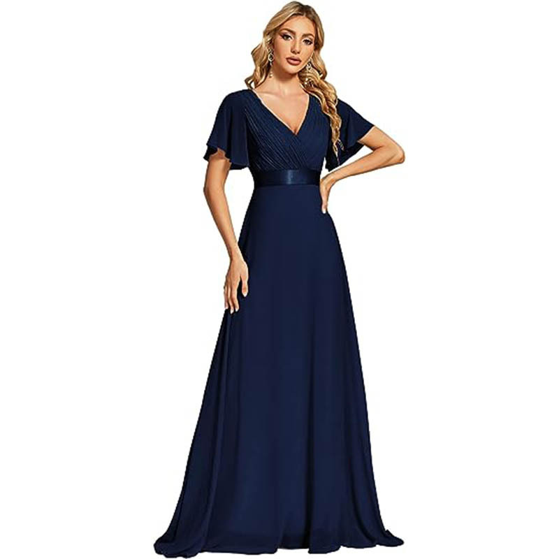 V-Neck Long plus size Chiffon Banquet Bridesmaid Dress Amazon Cross-Border Large Swing Horn Sleeve dress Evening Dress
