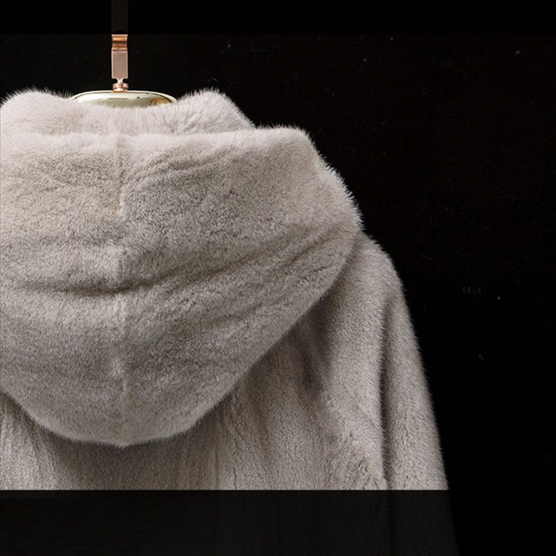 100CM over-the-knee loose version A imported mink coat women’s long whole mink hooded velvet mink coat