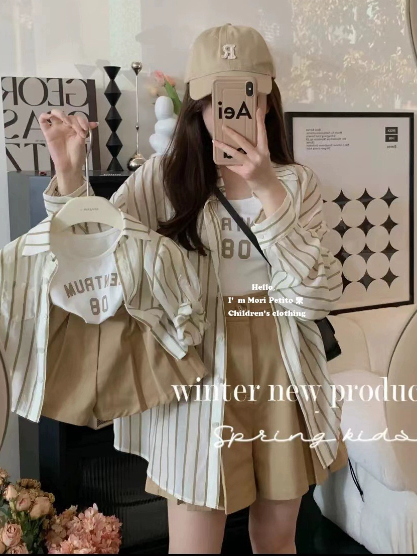 Striped children’s sun protection shirt pure cotton spring and summer parent-child wear