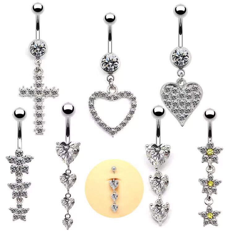 Gabe Europe and the United States cross-border flower navel ring butterfly navel nail navel ornaments heart-shaped zircon navel buckle body piercing ornaments