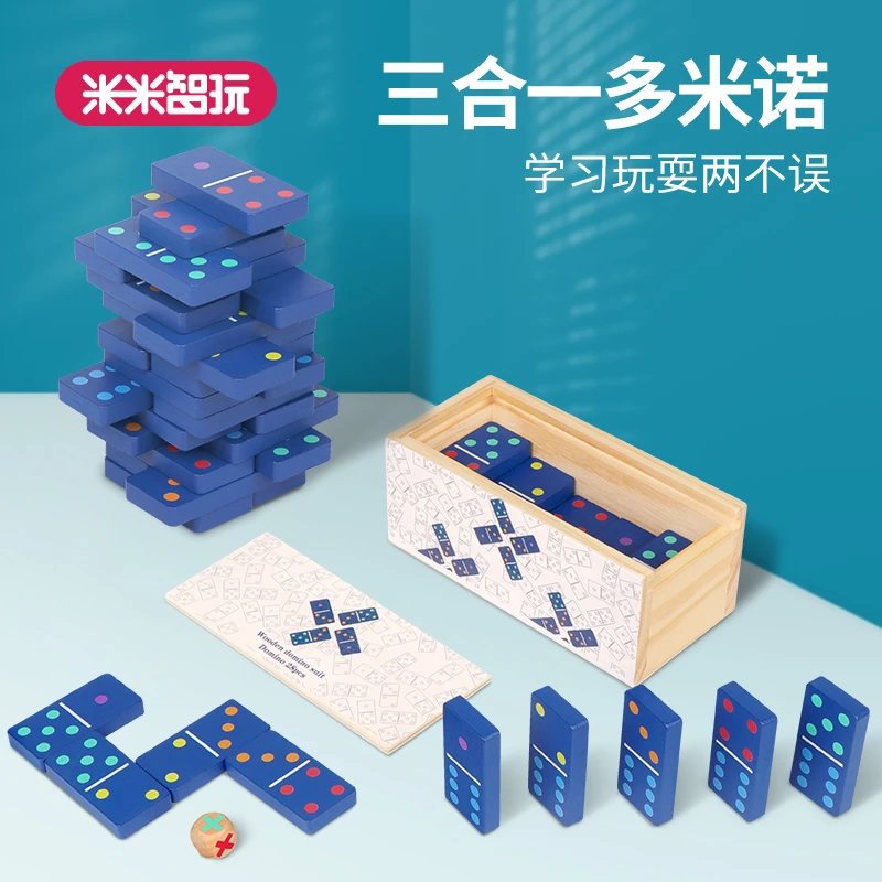 Mi Mi Zhi playing dominoes wooden building blocks animal Dragon Children’s desktop game baby educational toys