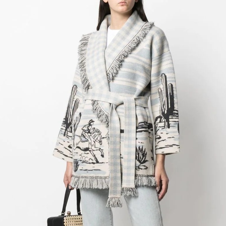 Amazon new Cactus jacquard cardigan large lapel sweater elegant commuter European and American Foreign Trade mid-length coat