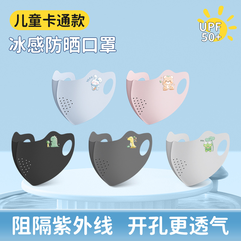 Children’s sunscreen mask 2024 new cartoon seamless ice silk breathable mask summer UV protection for boys and girls