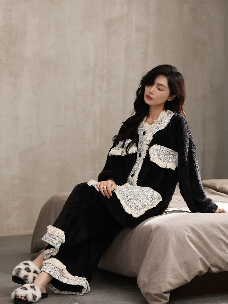 Coral velvet pajamas for women winter plus velvet 2024 new thickened flannel home clothes can be worn outside the warm suit