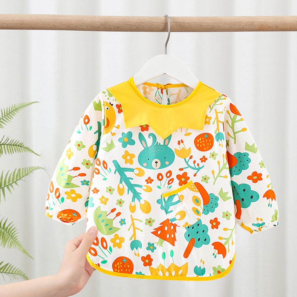 Cotton children’s overcoat thin waterproof anti-dirty long sleeve anti-dressing baby spring and autumn eating clothes baby eating bib cross