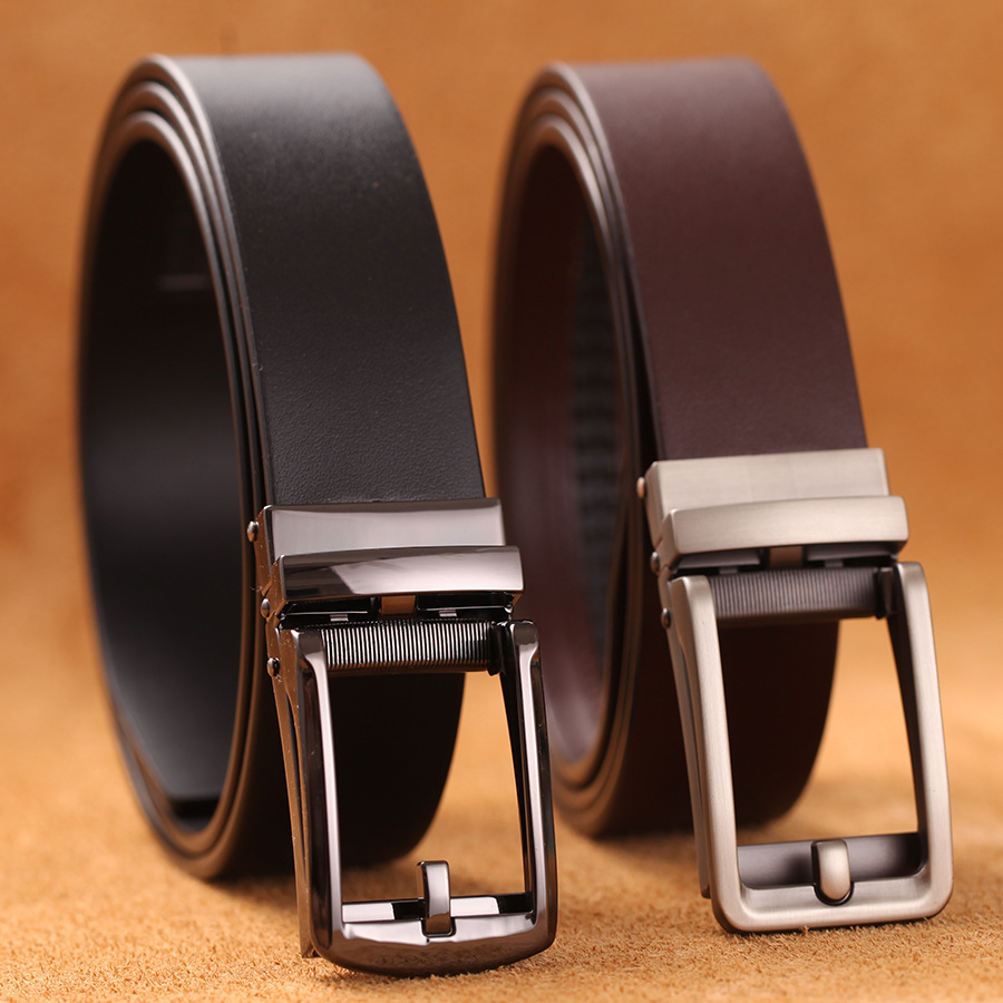 Cross-border new hot sale Men’s automatic buckle first layer belt men’s reverse pull automatic buckle cowhide men’s belt wholesale