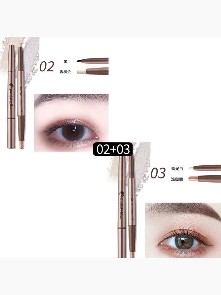 Double-ended silkworm pen for women, pearlescent brightening eye makeup for beginners, long-lasting non-removing makeup highlighter eye shadow stick, anti-sweat