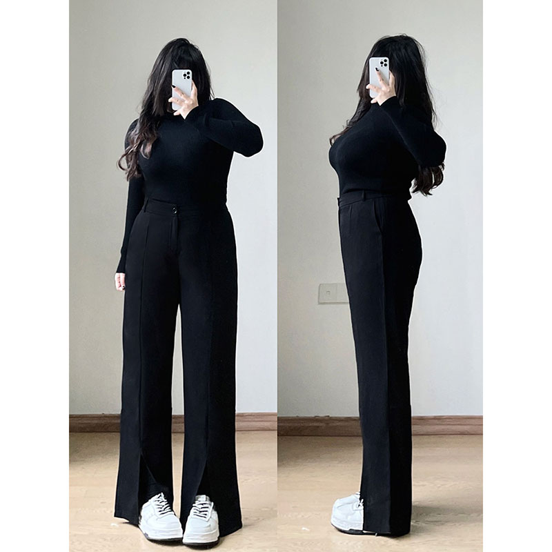 plus size women’s 300kg black suit pants women’s summer drape pants chubby girl slim wide leg bell pants women’s pants