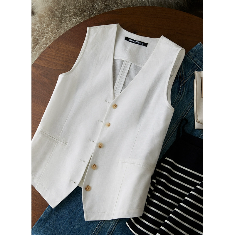 Cotton and linen outer thin summer fashionable vest