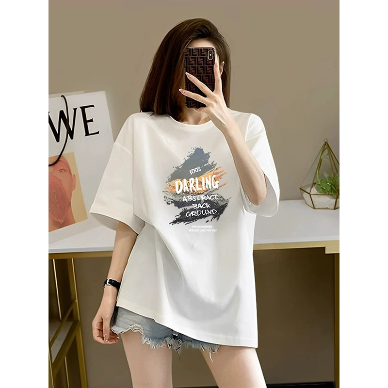 Advanced deep gray lady pure cotton short -sleeved T -shirt female 2025 summer new mid -length European goods big version