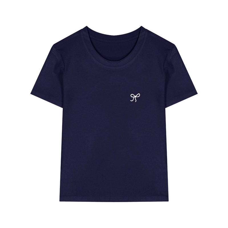 chic embroidered round neck short sleeves front shoulder casual bow