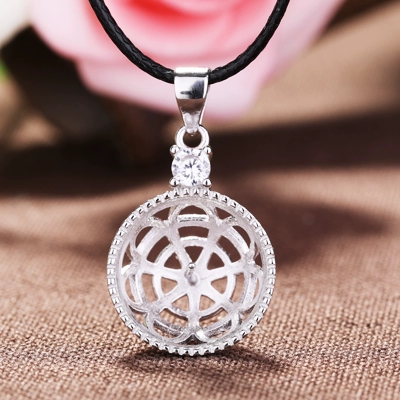 S925 sterling silver pendant empty holder diy women’s inlaid beeswax turquoise amber crystal pearl round bead silver holder