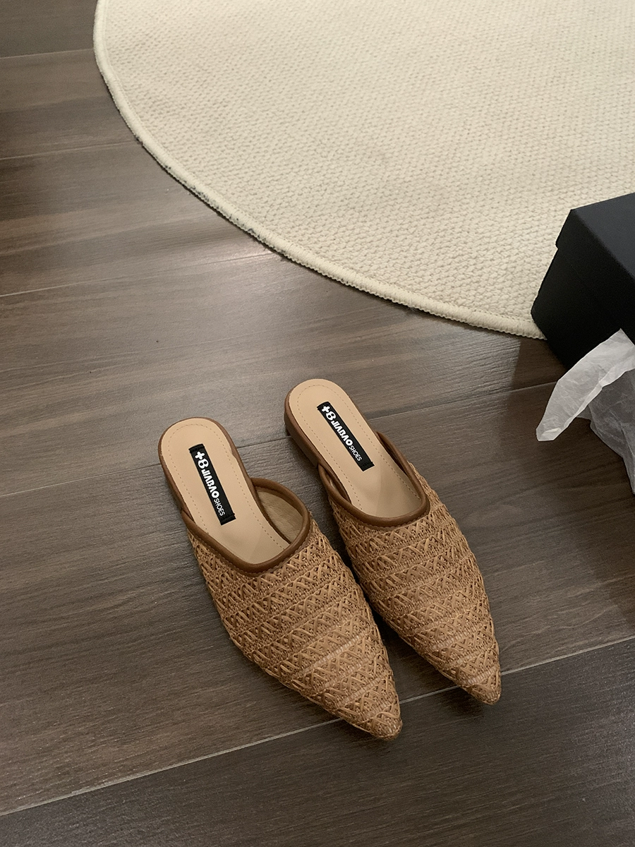 Lazy flat retro woven summer half slippers