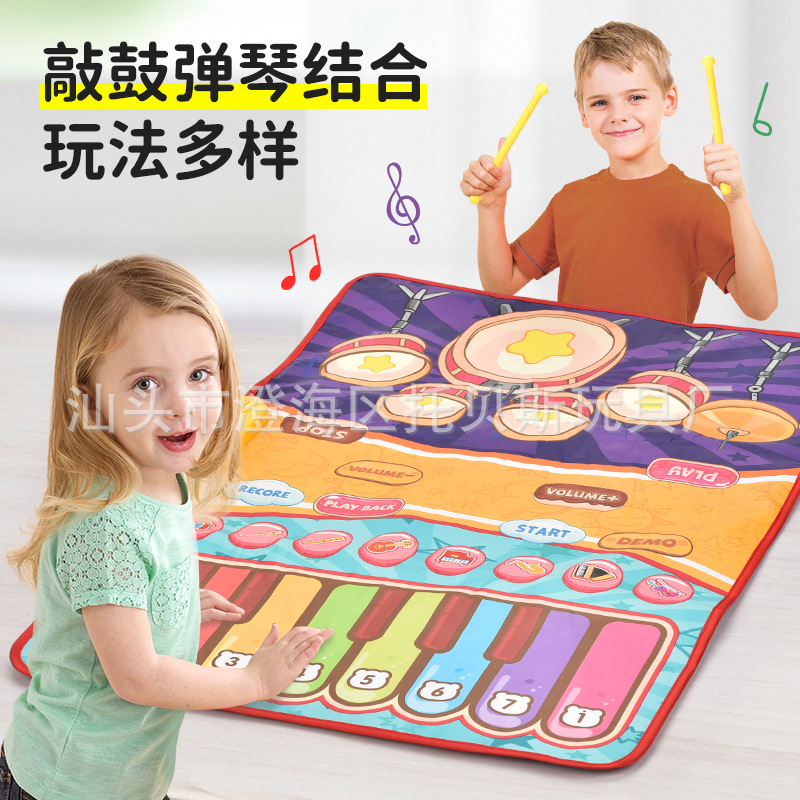 Cross-border new hot sale two-in-one multifunctional jazz drum piano music blanket puzzle early education pedal toy