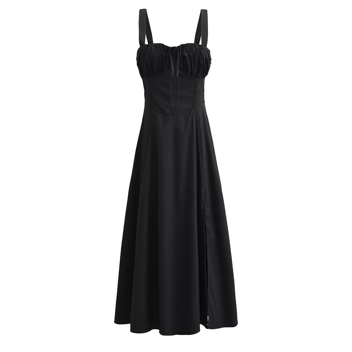 Niche drawstring low cut slim slit suspender skirt fish bone