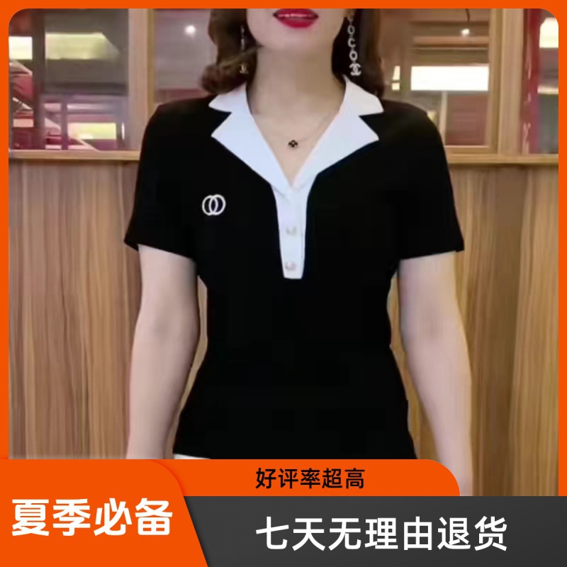 Suit Collar Top Women’s 2024 New Summer Korean-style Short-sleeved T-shirt Women’s Slim-fit Lapel Polo Shirt Women’s Top