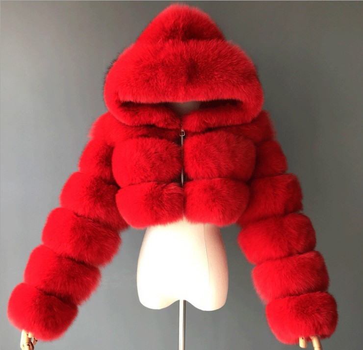 Winter New plus size Faux Fur Coat Women’s European and American Short Three-section Stitching Hooded Coat White and Black