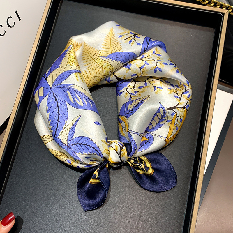 Korean Summer New Mulberry Silk Scarf 53cm Professional Elegant Scarf Small Square Scarf Plant Flower Silk Scarf