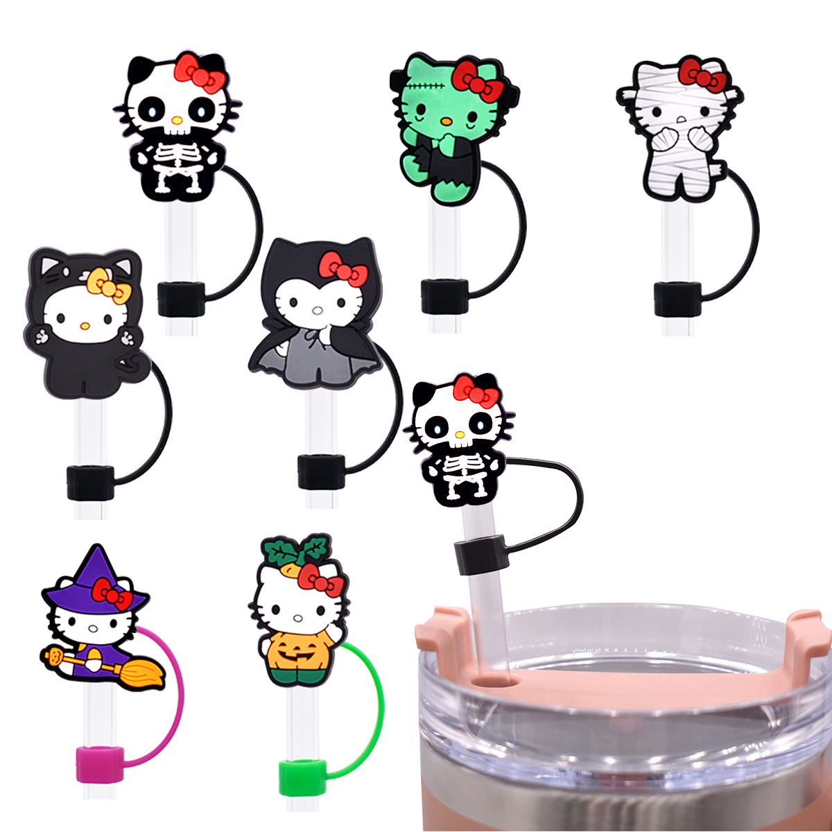 Cute KT Cat Straw Plug Dust Cap Amazon 10mm Universal Straw Cover Decorative Halloween Party Straw Cap