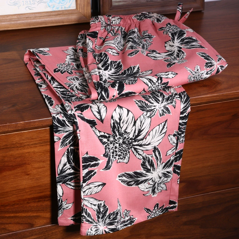 Women’s loose large size fine summer thin plaid long pajamas home pants 100% cotton soft, breathable, comfortable and skin-friendly