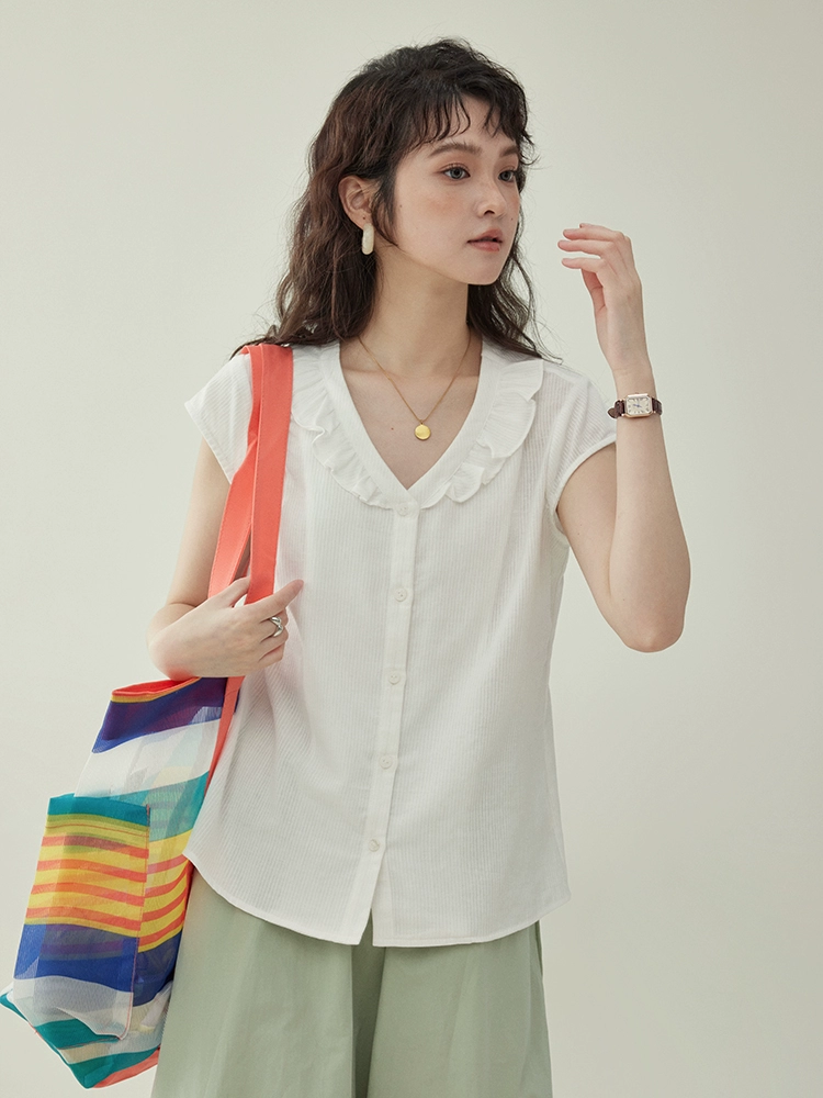 AMUU original Xiaofei sleeve single -breasted white shirt